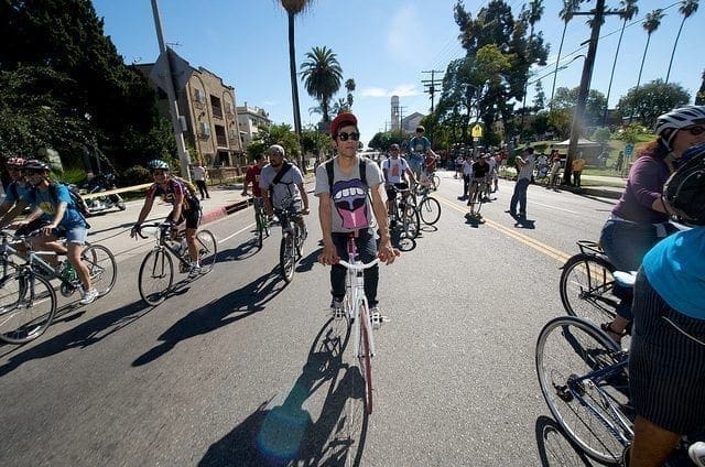 On Sunday, April 15th, from 10 am to 3 pm, CicLAvia will create ten miles of car-free city streets for Angelenos. Promoting public health, alternative transportation, open space, economic development and community building through connected neighborhood, CicLAvia encourages participants to make the city “their own”. Bike, jog, take your dog for a walk, stroller small children or skate, it’s up to you! Participation in CicLAvia is free and open to all, so enjoy this rare chance in discovering and rediscovering Los Angeles. The initial route will be held again and will also add new spurs to El Pueblo/Olvera Street and South LA, for a total of ten miles. Businesses along the corridor will open their doors early so participants can make a full day of it. The program provides a platform for participants to create their own vision for LA; a way to discover and re-discover parts of the city; and not worry about traffic. Modeled after the decades old “ciclovía” in Bogotá, Colombia, and other similar carfree events like New York’s Summer Streets to San Francisco’s Sunday Streets. Participation requires no RSVP, simply show up and enjoy with friends and family and see what Los Angeles can become with innovative thinking! More info >