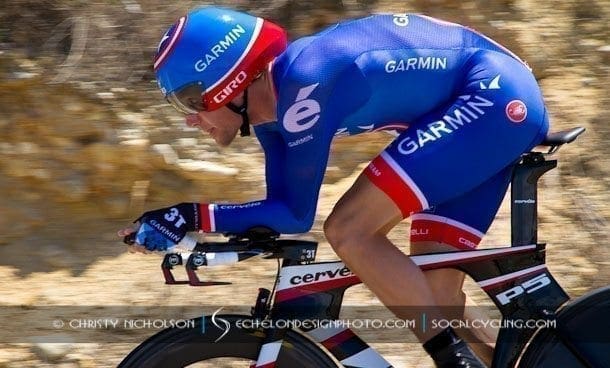 “I spent a lot of time on the time trial bike in training,” said van Garderen when asked about his preparation for today. “The course today was a tough one because there were no corners; pretty much just straight road. Yeah, there were a few ups and downs but the entire time was in the bars with the exception of the final climb. Just staying in that position for that long is hard on your arms, whereas, if you had a few corners you can kind of sit up and take a bit of a breather. So it was on the power the whole time which was really hard.”