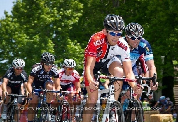 The descents going down into the valley were fast, but not technical, so the group of riders who went over the top of the first climb stayed together. Coming out of the valley, a few riders dropped off the back due to a high tempo on a steep section of the climb. On the second lap there was a big selection on the first climb. The selection ended in six CashCall riders and Tom Soladay from the Optum Pro Cycling pb Kelly Benefit Strategies team in the break.