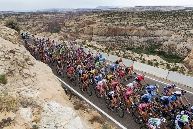 Martin Wesemann (South Africa) of MTN Qhubeka and Michael Hepburn (Australia) of Orica-GreenEDGE were allowed to escape from the peloton early after the start in Panguitch. The two built a sizable lead of nearly eight minutes before beginning a relentless ascent of Boulder Mountain. “It’s impossible not to notice the mountain and the scenery, it’s amazing,” noted Wesemann.