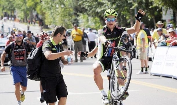 Heading into the final lap of the day, with the break still intact, the second sprint in Aspen saw Lewis cross the line first, followed by Burnett and Cooke. With the pressure building, the peloton started closing the gap with Cannondale Pro Cycling leading the chase through town to the roaring cheers of fans lining the route.