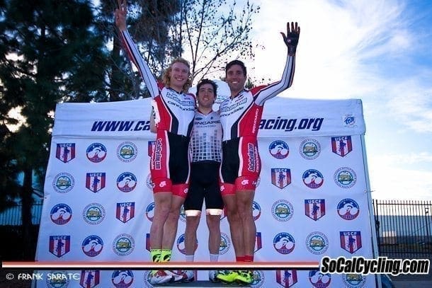 In the Pro 1-3 race, a break of eleven motivated riders got up the road to fight it out for the cash. In the end, Tyler Magner (Hincapie Sportswear DEVO) soloed to the win just ahead of Tyler Locke (SoCalCycling.com / Craig Shelly) in 2nd, followed by Ryan Schneider (SoCalCycling.com / Craig Shelly) in 3rd to round out the podium.