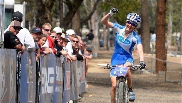 Above Photo – Catharine Pendrel(Luna Pro Team) wins the elite women’s race in Fontana, round 3 of the USA Cycling US Cup Series presented by Sho-Air Cycling Group
