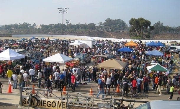 The San Diego Velodrome Spring 2015 Swap Meet is this Sunday, April 19th. The San Diego Velodrome Spring and Fall swap meets draw vendors of all types.    Velo Swap  is a great way to find bargains on both new and used bicycle gear, or conversely clear out your garage.  Velo Swap also contributes a significant amount to the non-profit San Diego Velodrome Association annual budget.    Buyer entry is only $ 5, and seller entry starts at $ 15 for walk in sellers.
