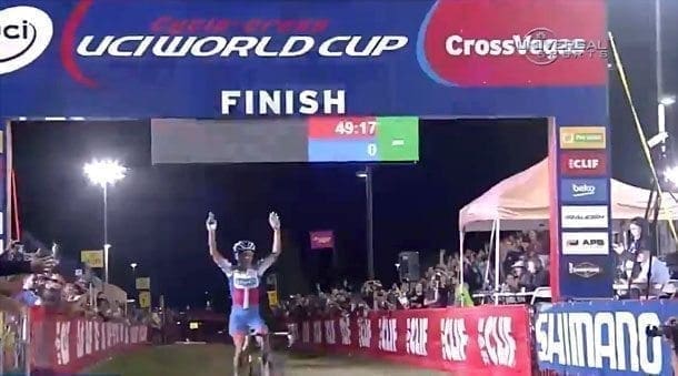 Watch Katerina Nash (Luna Chix) and Wout Van Aert make UCI World Cup history by winning the Clif Bar Cross Vegas.