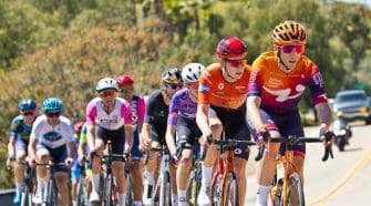 With a strong tailwind and hot and dry conditions, it was a fast start to racing. Multiple attempts to form a breakaway were shut down and finally three riders went clear after almost 100km.