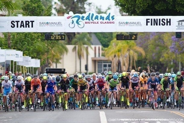 Visit Dallas DNA’s Claire Rose won the city of Redlands criterium after spending 20 laps off the front on a solo attack. The English time trial specialist attacked around 15 minutes into the hour-long race and held off the advancing field by 14-second advantage going into the last lap. Megan Jastrab (Amy D) won the field sprint for second place and Lizzie Williams (Supermint Hagens Berman) finished third.