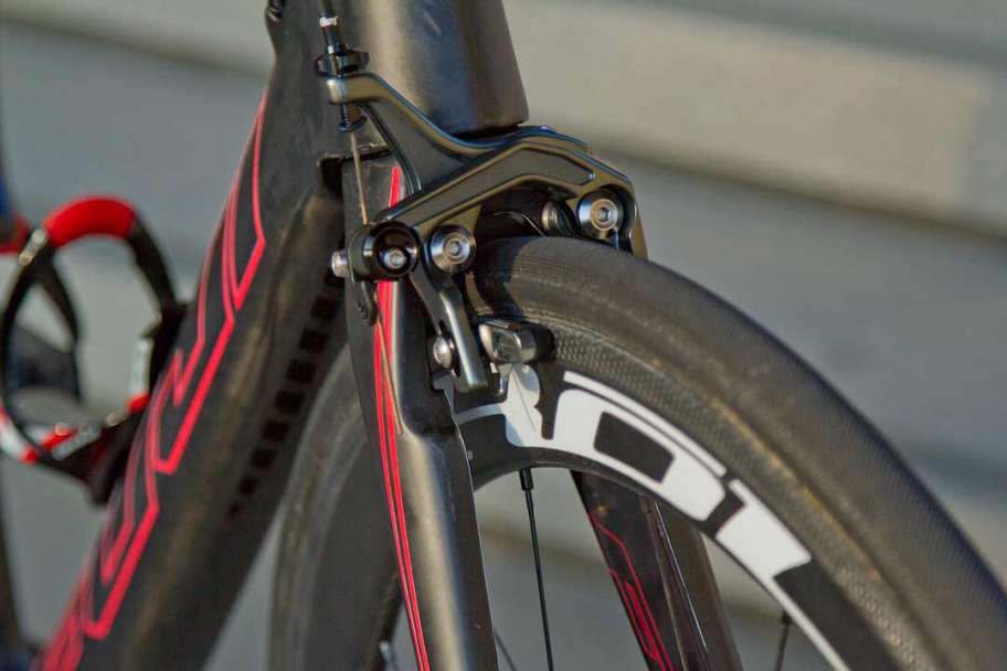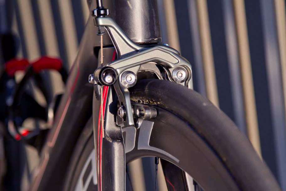 A benefit to using TRP T930 direct mount rim brakes is that you don’t have to grab the brake levers quite as hard with the direct mount braking system as you do with a standard dual pivot brake system. The TRP T930 direct mount rim brakes are crisp and responsive and you will not get any brake chatter, since they are directly mounted to the frame (or at least when used on the Fuji Transonic frame).