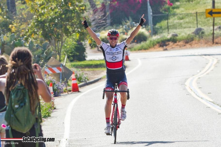 With 3 miles to go, I tried an attack but was closed down immediately. Instantly, I pulled hard again (not really an attack) and I could see that no one wanted to take up the responsibility and I knew this was my opportunity. I got a gap of 10-15 seconds in the bottom of the hill and focused not to ride out of my comfort zone, but keep in control. When I looked back I could see three or four guys getting closer to me and if one of them had sacrificed himself they might have been able to catch me. When I was on the top I knew I would win and accelerated one last time towards the finish line. What a feeling winning riding solo away from the breakaway. The last time I did that was in 2013. And what great teamwork; with threeSoCalCycling.com Team teammates in the break and Leo and Ethan covering moves in the field if the race opened up again.
