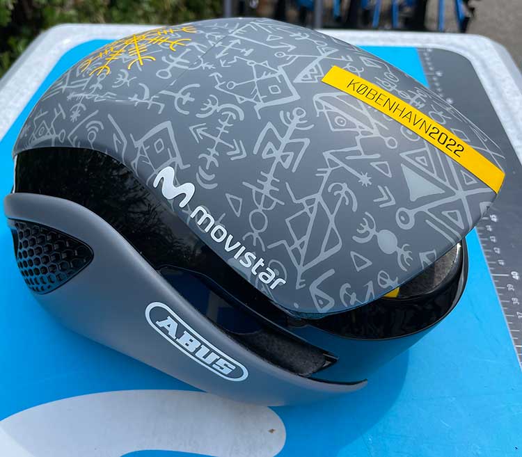 Supporting a charity campaign from their top sponsor and helmet / security partner, ABUS, the Movistar Team wore a special-edition set of helmets over the first two road stages of the 2022 Tour de France which were held in Denmark.