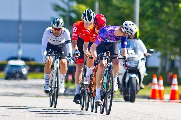 Eddy Huntsman (Butcher Box) made a move on the back side of the course to hold off the three riders in the break to secure the win with Gavin Hlady (Mikes Bike’s) taking second and Jason Paez (Legion of Los Angeles) filling out the podium for 3rd. Aden Wardrop (SoCalCycling.com Team) hung on for fourth place.