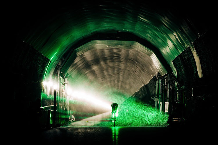 The test demanded total concentration: over 100 runs at exactly the same speed, position, and line – each time through a green curtain of helium bubbles and laser light. The Catesby Tunnel, with its constant temperature and absence of external influences, provides the perfect environment for this kind of experiment.