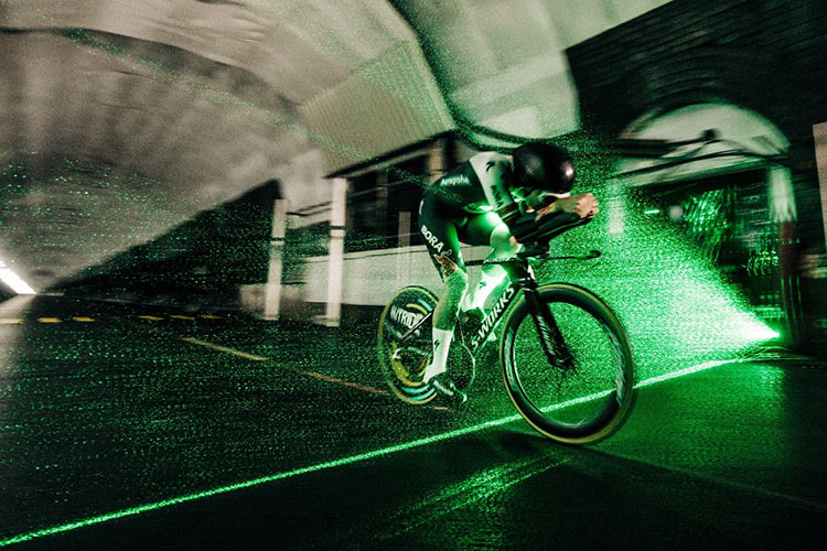 It looks like science fiction, but it’s cutting-edge research: In the Catesby Aero Research Facility – a decommissioned railway tunnel in England – Red Bull – BORA – hansgrohe and Specialized, together with measurement specialist LaVision, have conducted a Particle Image Velocimetry (PIV) test – a technique previously only known from Formula 1.