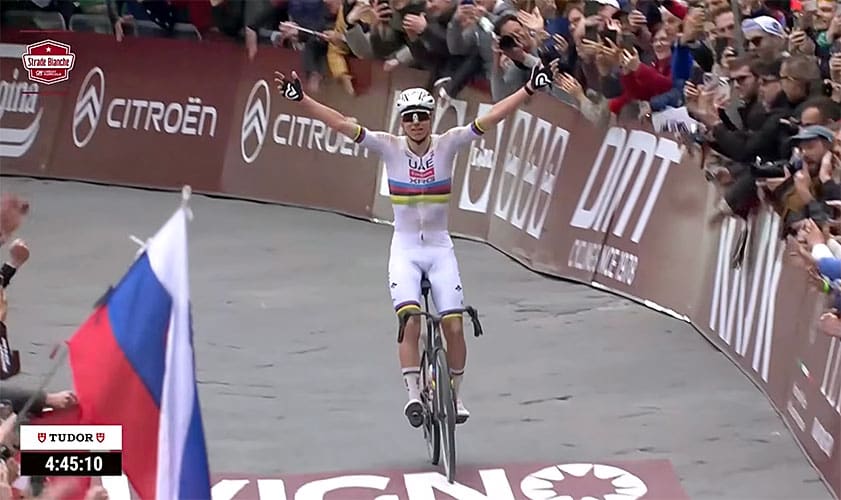 The iconic white gravel roads of Tuscany once again delivered unforgettable racing at the 2026 edition of Strade Bianche. A powerful solo attack from Tadej Pogačar decided the men’s race, while Elise Chabbey sprinted to victory after a dramatic women’s finale on the steep streets of Siena. Here are the key highlights and podium finishers from one of cycling’s most spectacular Spring Classics.